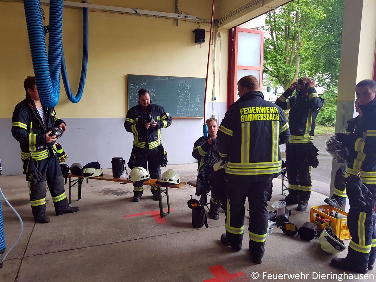 Deshalb trafen sich unsere Atemschutzgeräteträger zu einem Zwischenübungsdienst. Auf dem Plan standen die einsatztaktischen Grundlagen im Atemschutzeinsatz. Darüber hinaus wurde sich mit der Zusatzausrüstung für Atemschutzgeräteträger beschäftigt und die Kommunikation untereinander über Sprechfunk trainiert. Denn durch die angelegte Atemschutzmaske und Flammschutzhaube wird nicht nur das Sehfeld eingeschränkt, sondern auch die Verständigung untereinander.