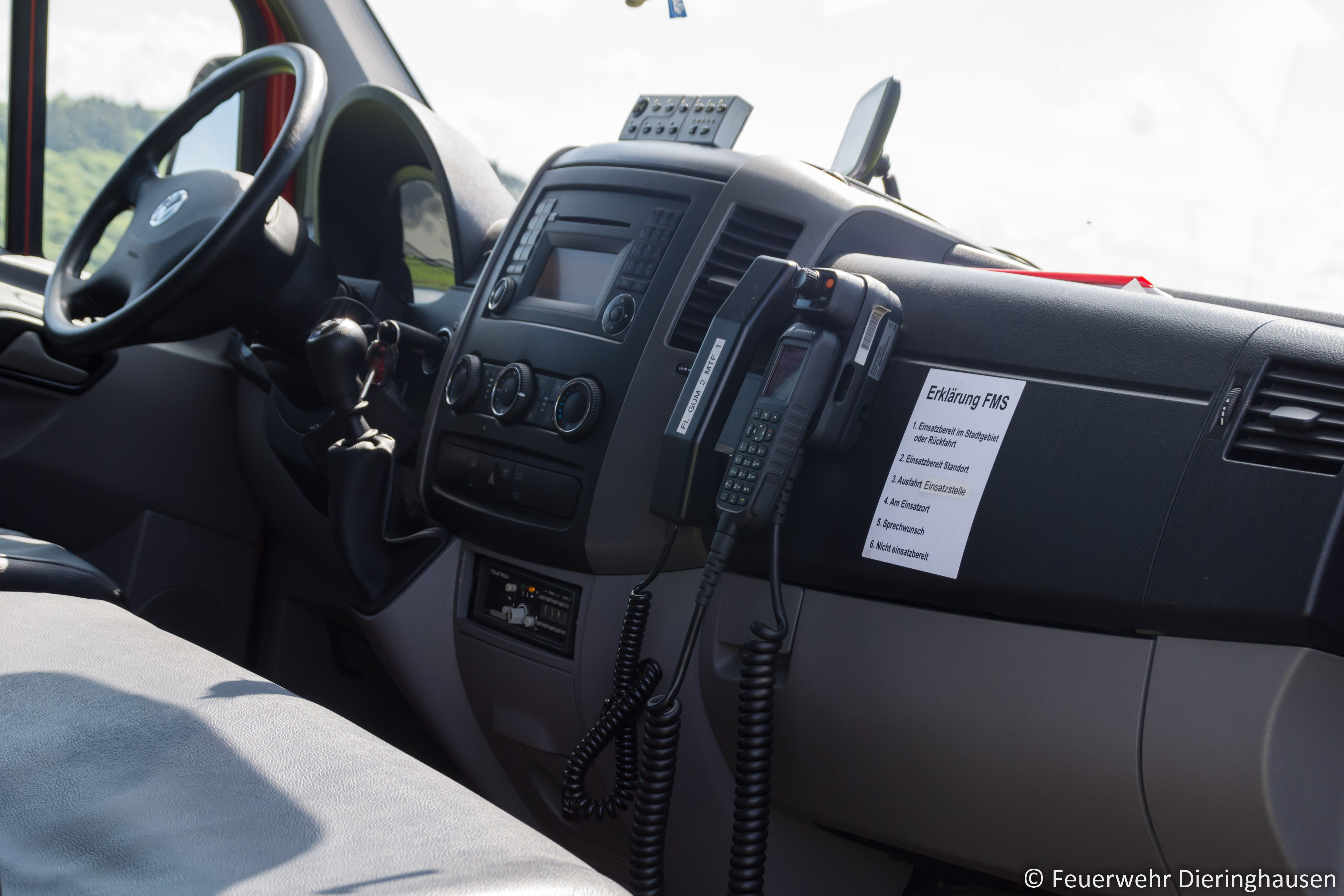 Ausstattung: Fest eingebautes Analog- und Digitalfunkgerät, 2 Analog Handfunkgeräte, 1 Digital Handfunkgerät, Material für Verkehrsabsicherung, Handscheinwerfer, Feuerlöscher