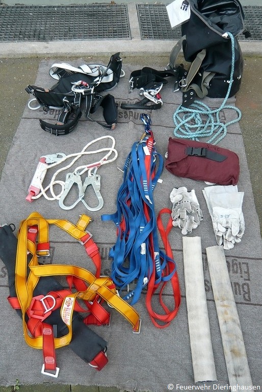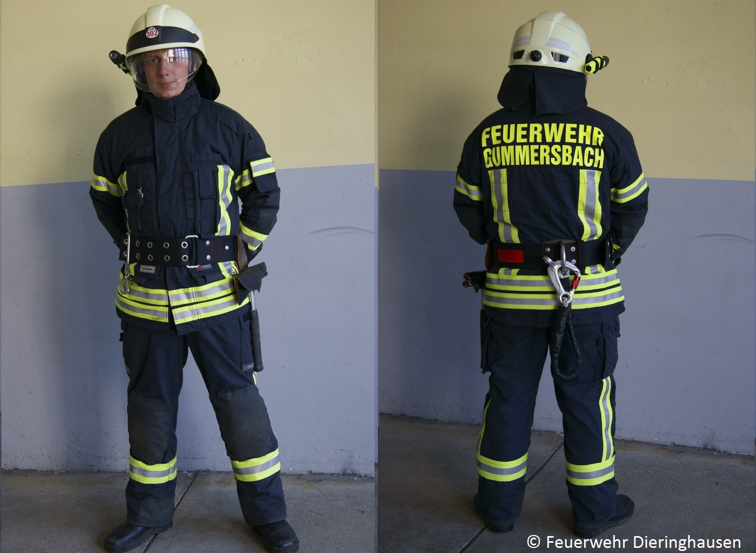 Schutzkleidung Die Einsatzbekleidung der Einsatzkräfte besteht aus Helm, Einsatzjacke, Überhose, Handschuhen, Schutzstiefel und Sicherheitsgurt.