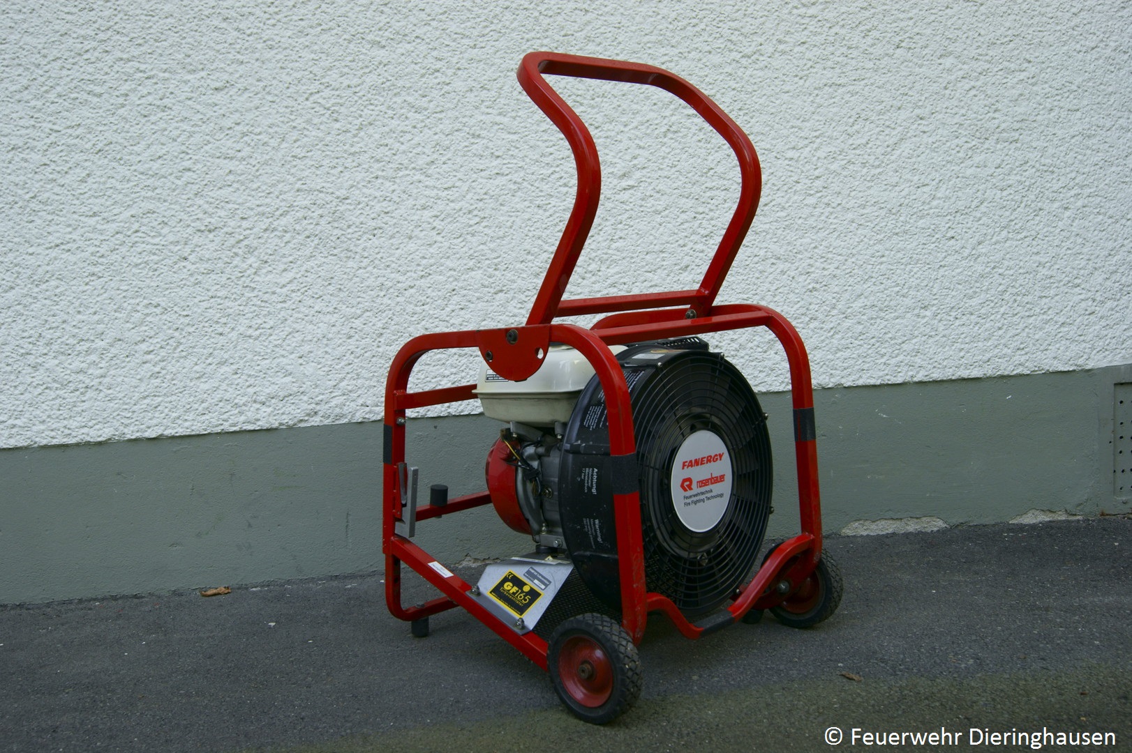 Hochleistungslüfter Mit dem Hochleistungslüfter wird eine Überduckbelüftung in Gebäuden erzeugt. Dies ermöglicht eine gezielte Ableitung von Brandrauch. |