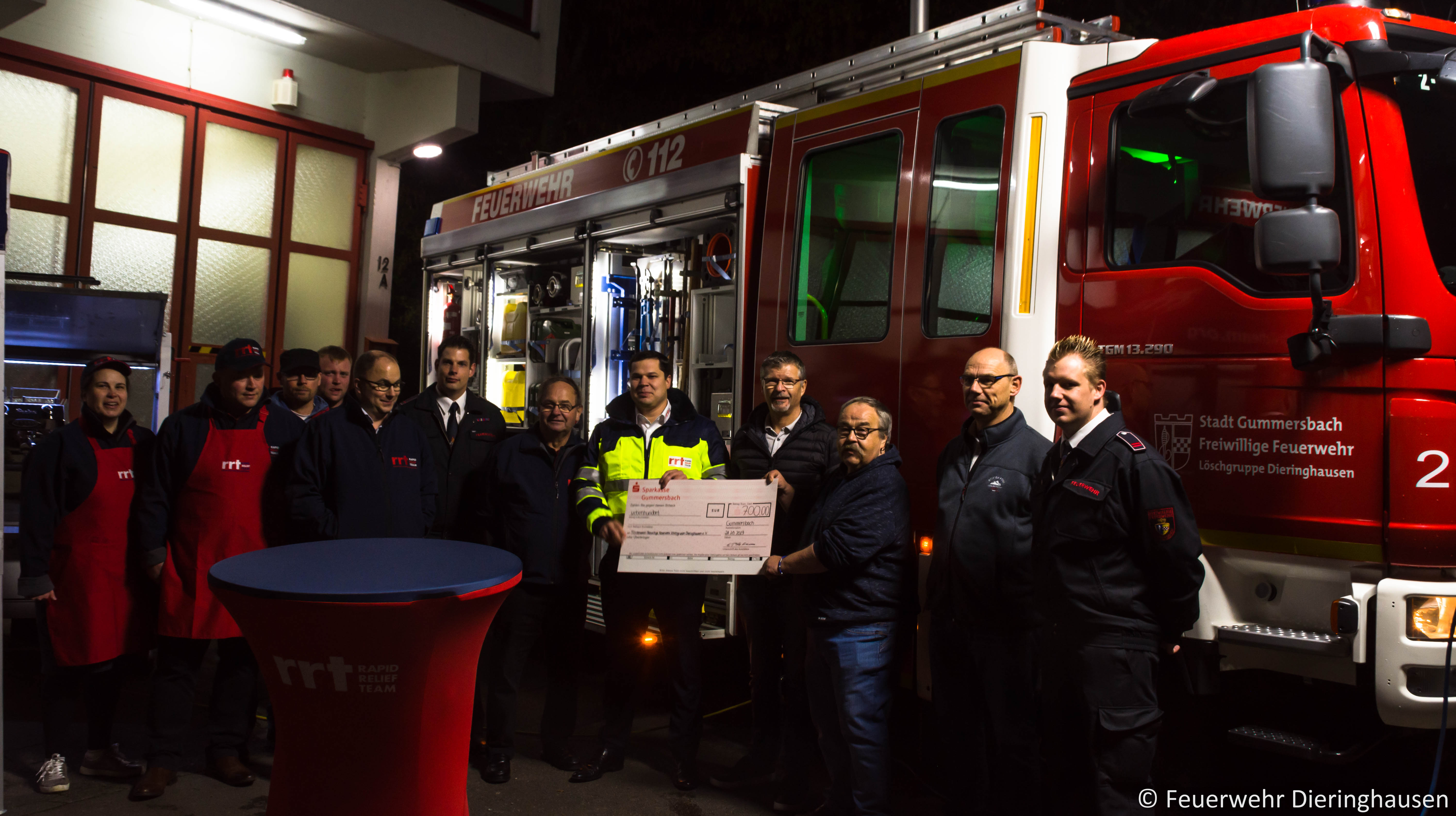 Gestern Abend wurde die Löschgruppe Dieringhausen von der Organisation RRT Rapid Relief Team Deutschland besucht. Grund hierfür war eine Spendenübergabe an den Förderverein Freiwillige Feuerwehr Löschgruppe Dieringhausen e.V..