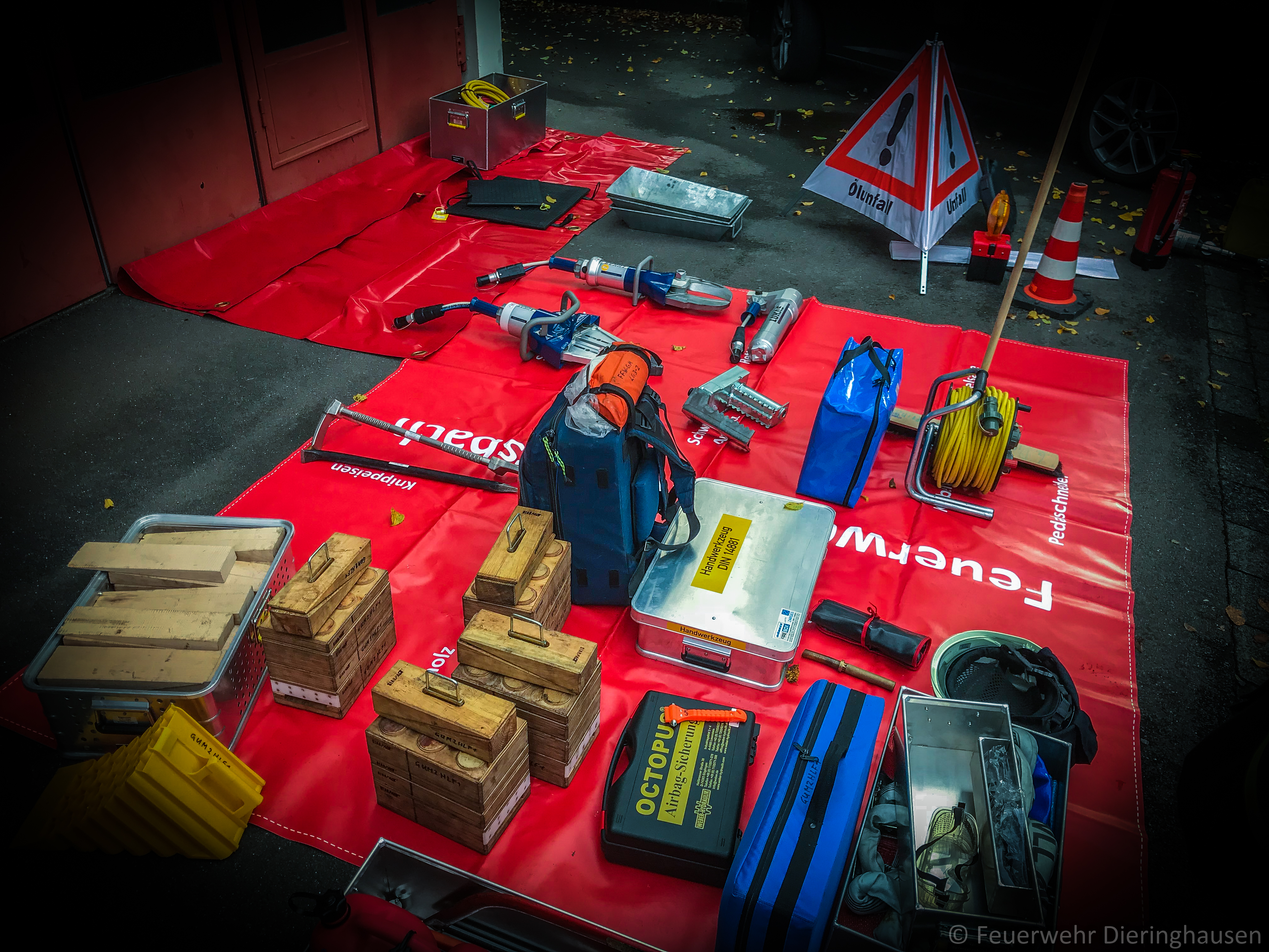 Eine Praxisstation beschäftigte sich mit den elektrisch betriebenen Geräten zur technischen Hilfeleistung (Wassersauger, Tauchpumpe, Hochwasserschmutzpumpe) und den verschiedenen Leuchtmitteln (Power Moon, Halogenstrahler) zum Ausleuchten von Einsatzstellen. In einer weiteren Praxisstation wurde das Thema technische Hilfeleistung bei Verkehrsunfällen vertieft. Unter anderem wurde eine Geräteablage eingerichtet und Einsatzgrundsätze in Bezug auf die Durchführung der technischen Rettung besprochen.