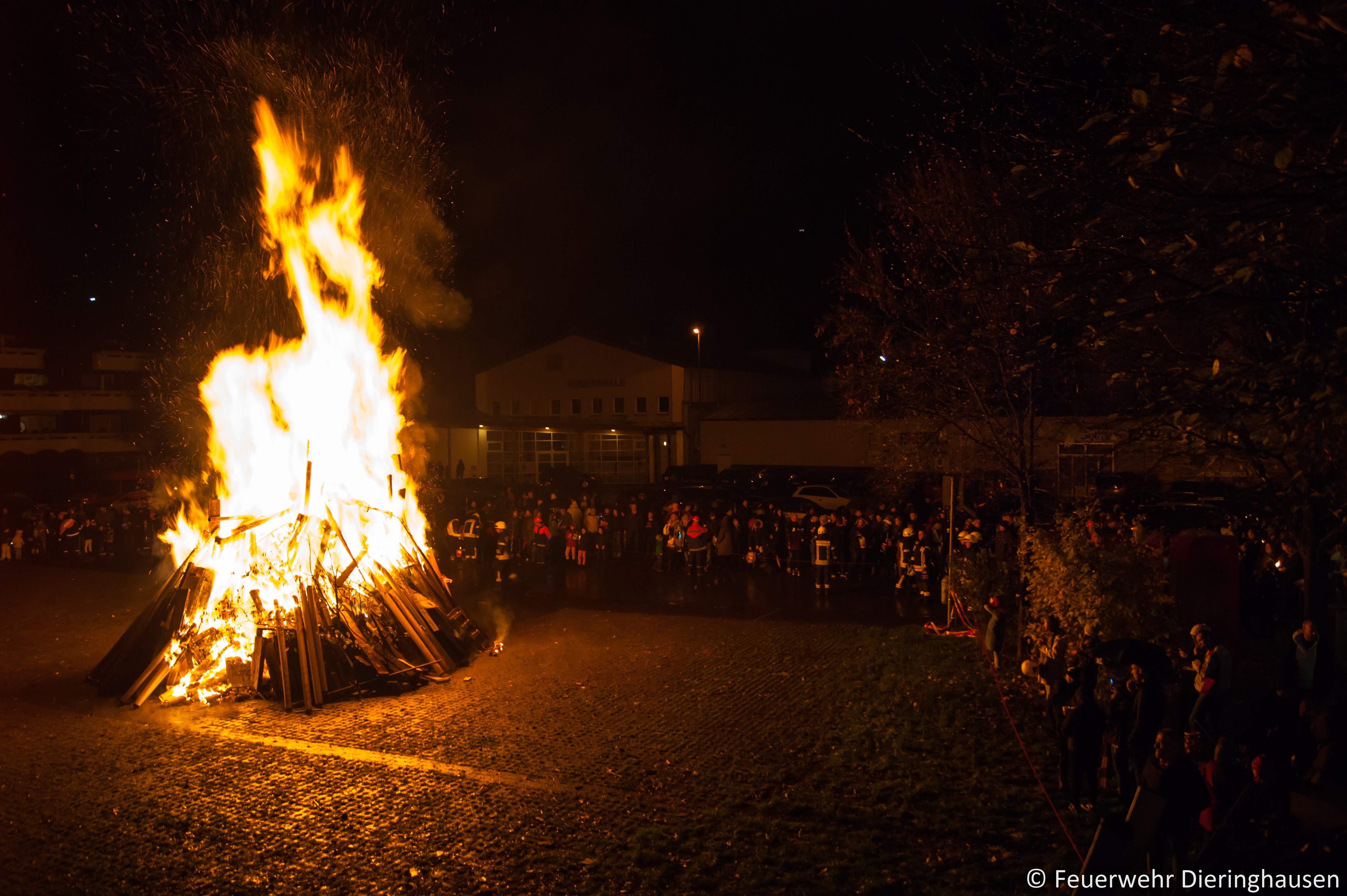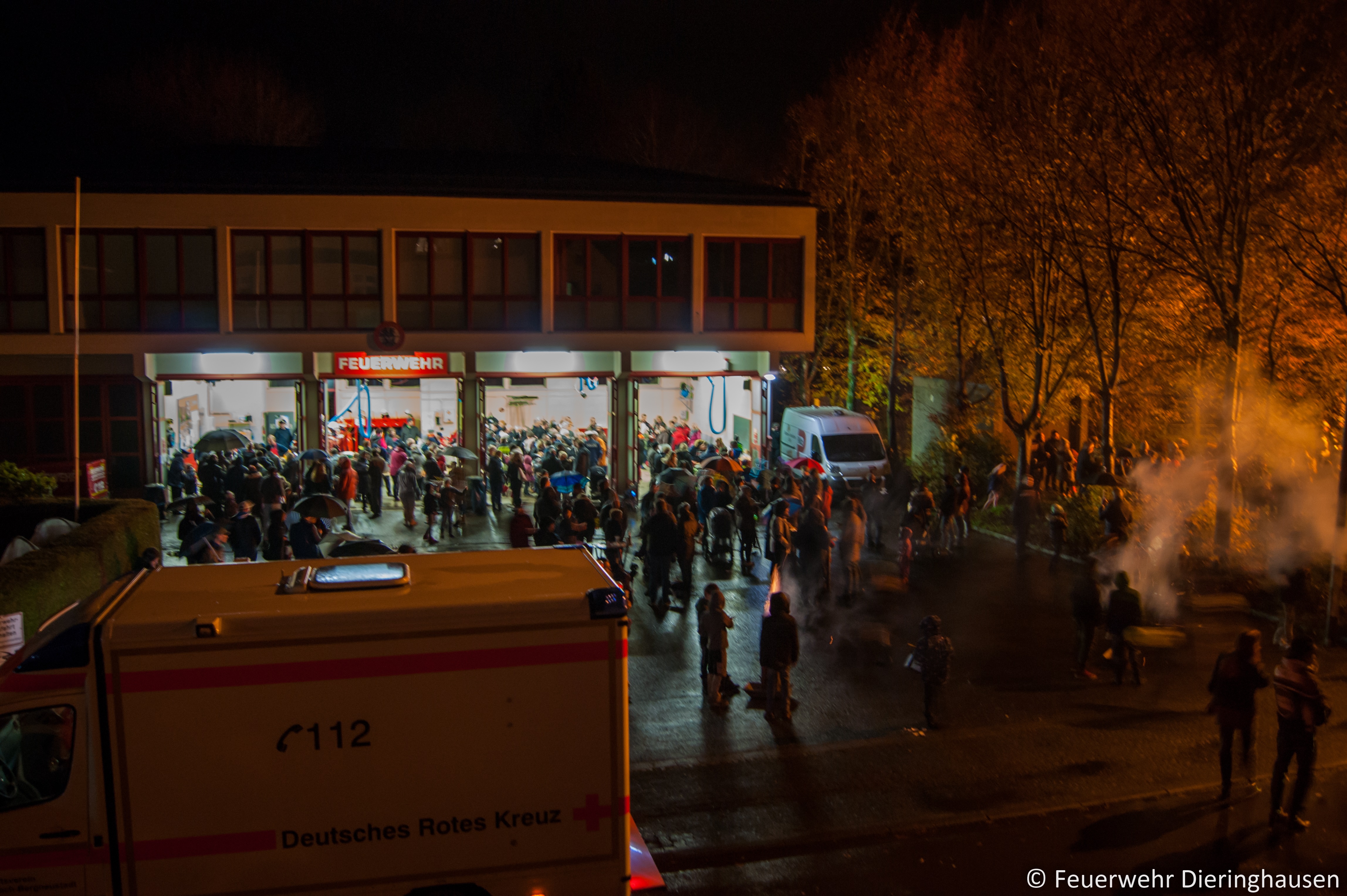 Trotz des unbeständigen Wetter fanden viele Menschen den Weg zu uns nach Dieringhausen. Beginnend an der katholischen Kirche zog der Laternenzug hinter St. Martin auf dem Pferd durch den Ort bis zum traditionellen Feuer an der Aggerhalle.