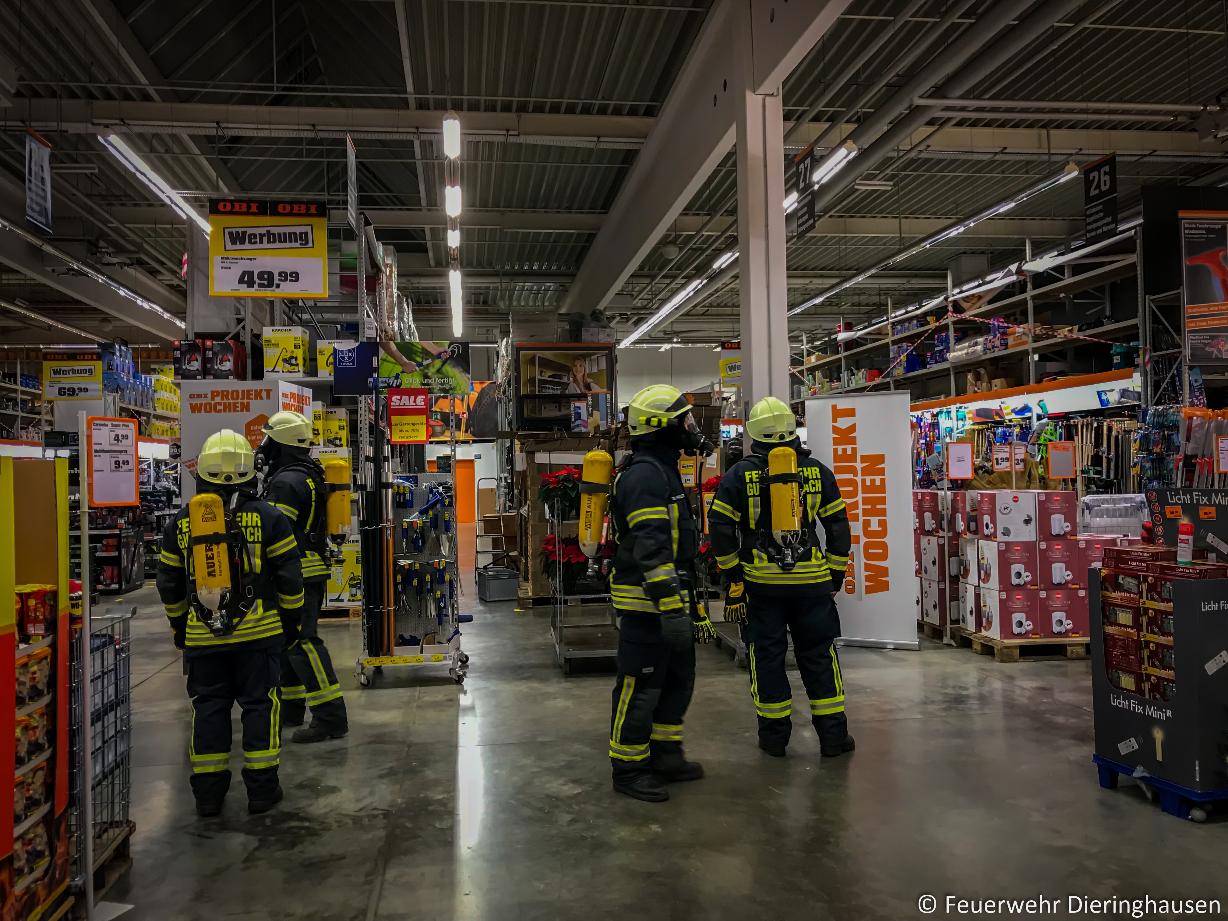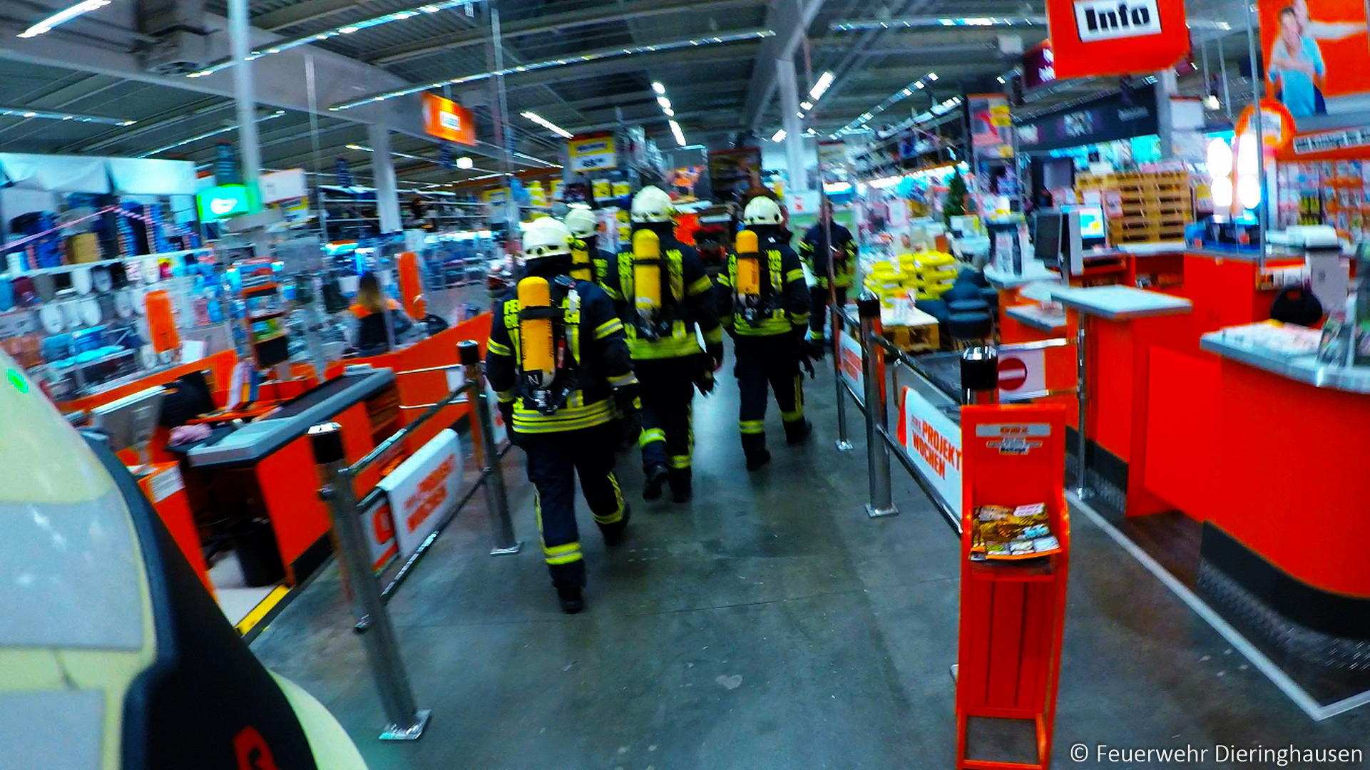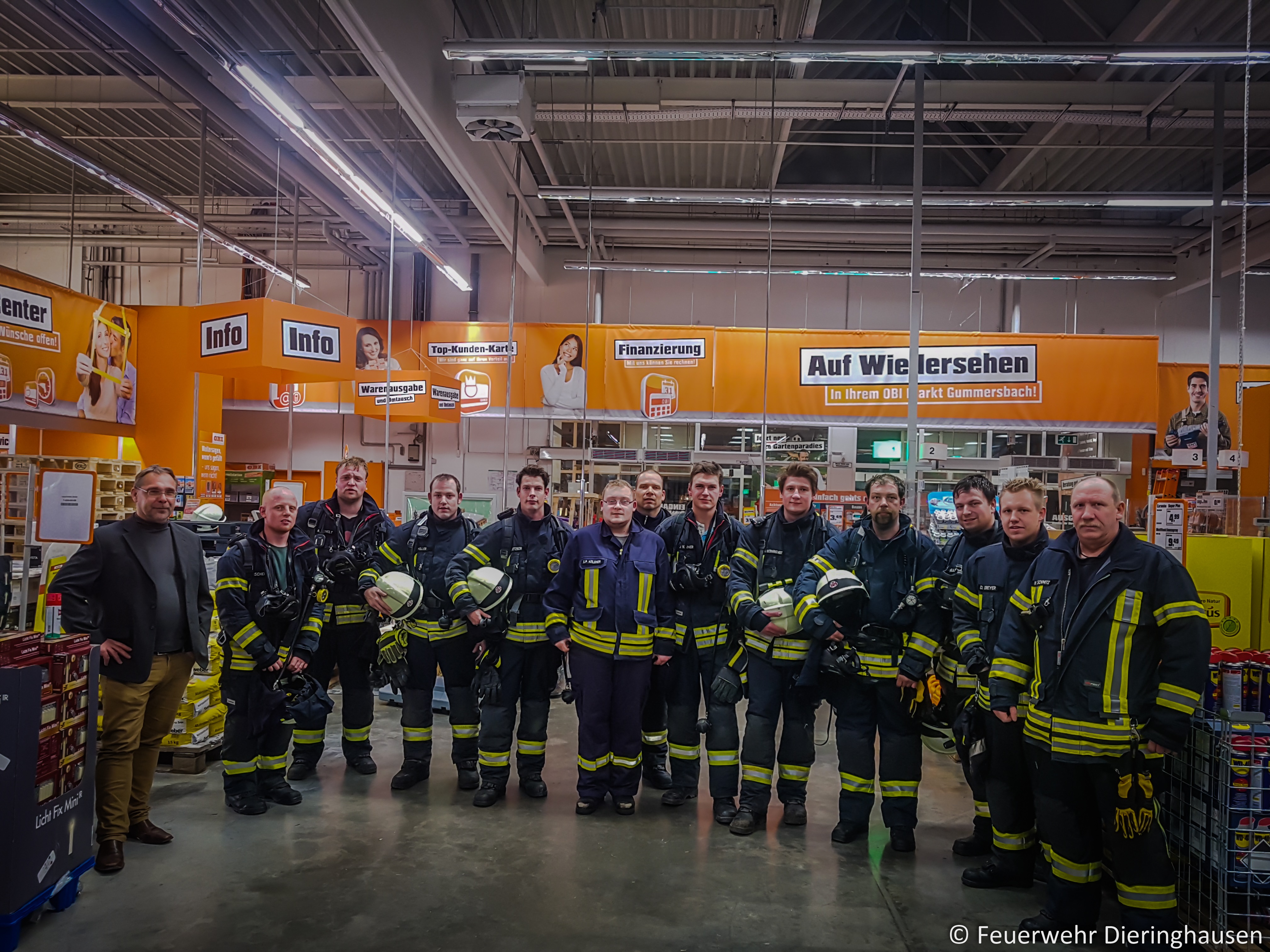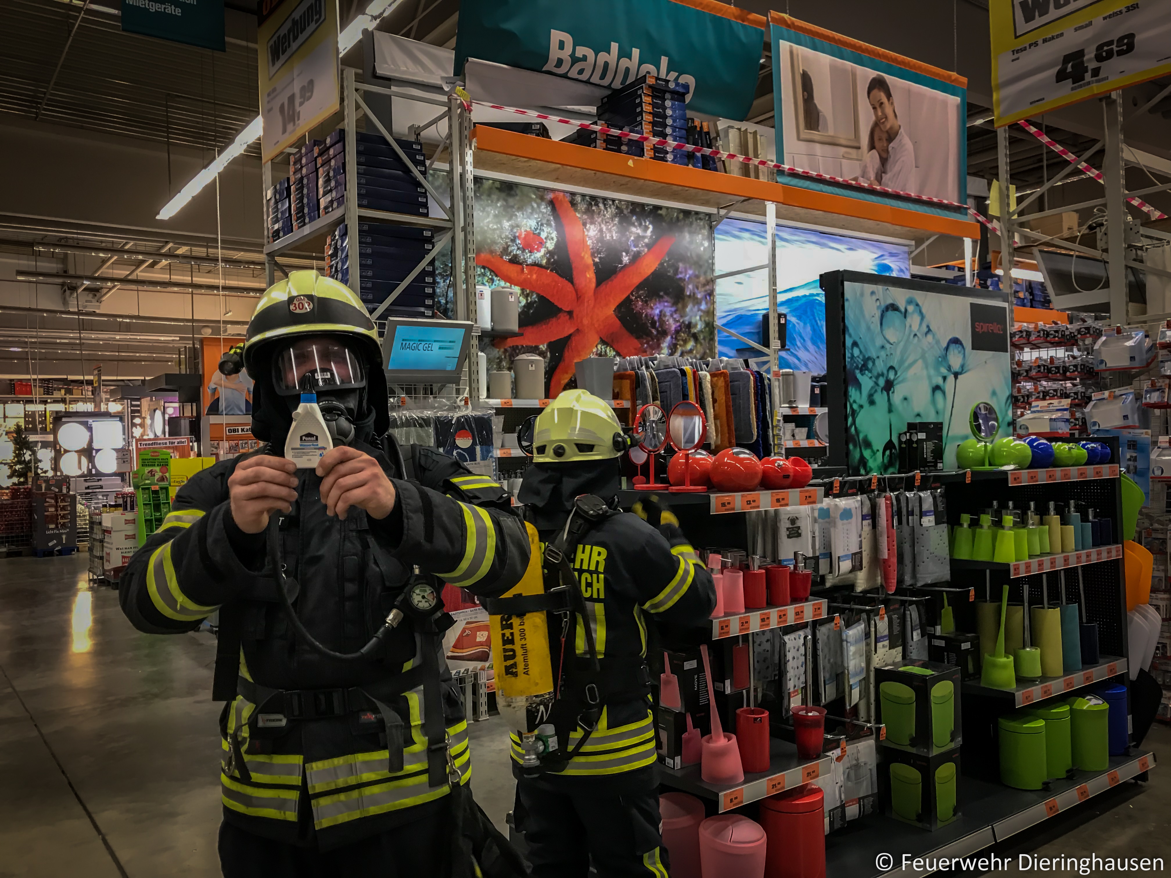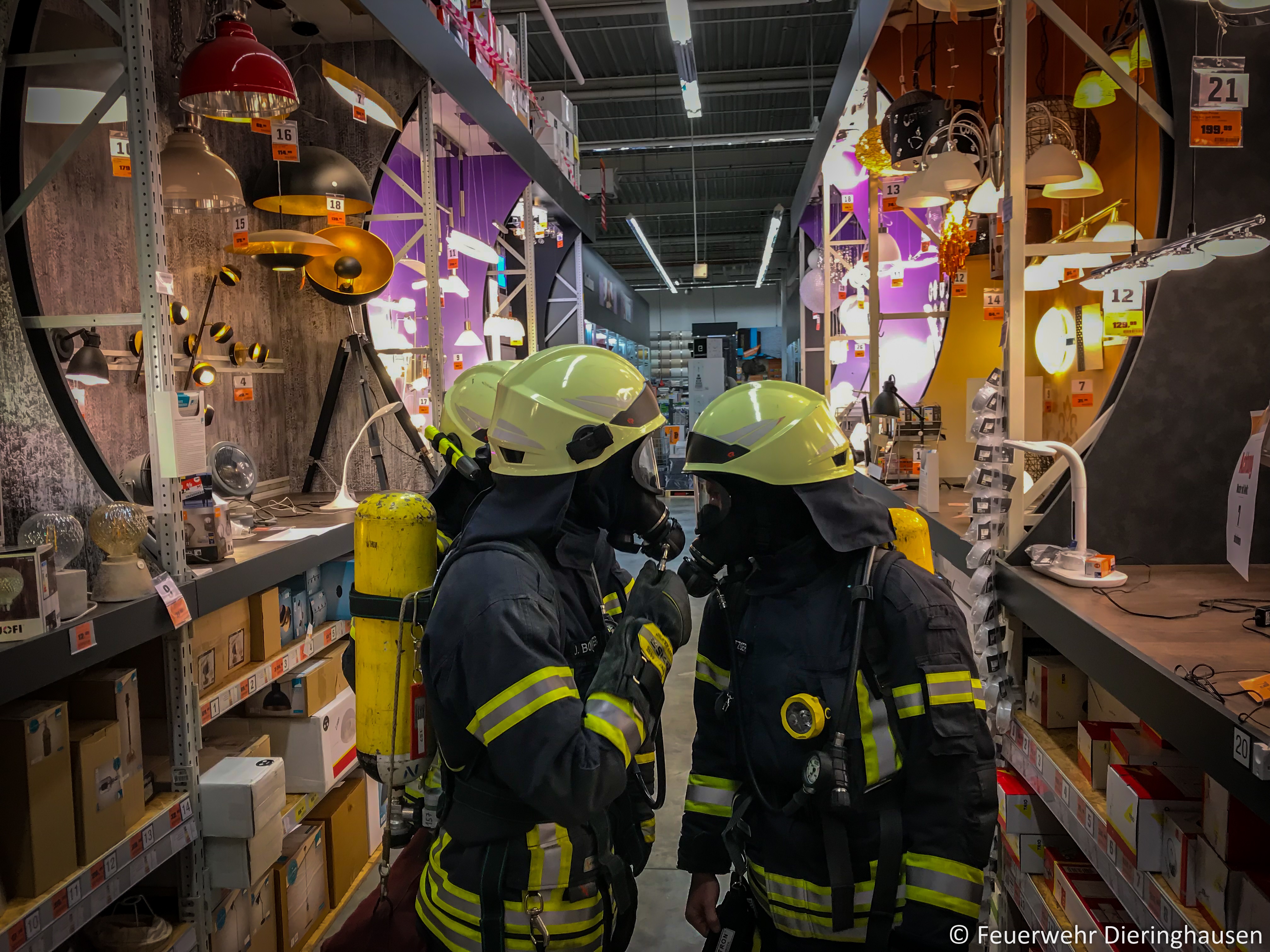 Am Abend sorgte eine Übung speziell für Atemschutzgeräteträger für erstaunen bei Mitarbeitern und Kunden in einem Baumarkt in Dieringhausen.