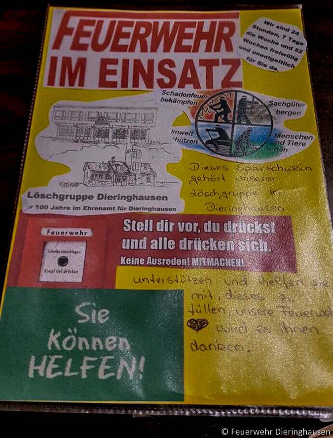 Außerdem möchten wir uns ganz besonders bei den vielen Bürgerinnen und Bürgern bedanken, welche die Löschgruppe Dieringhausen mit ihren Spenden unterstützen.