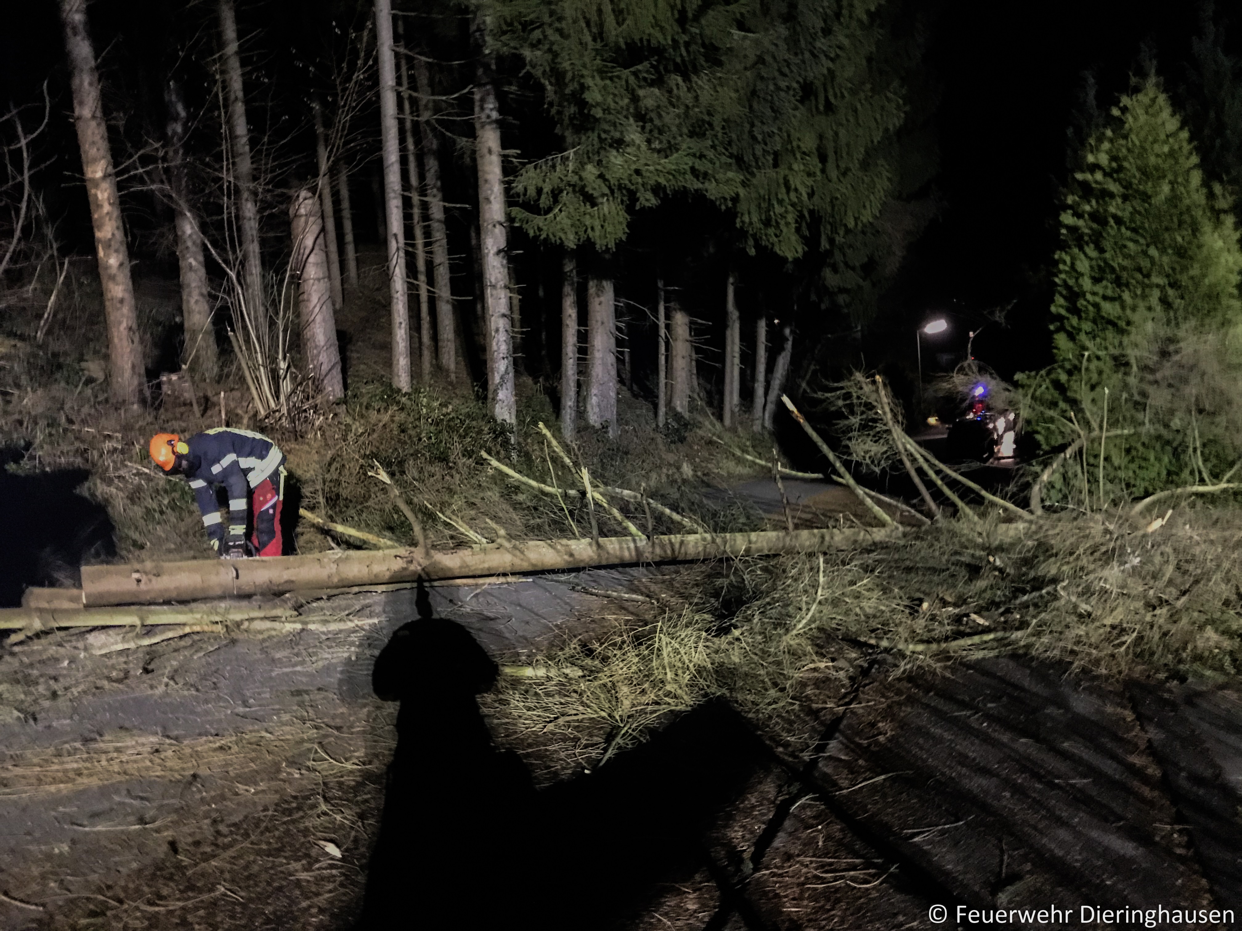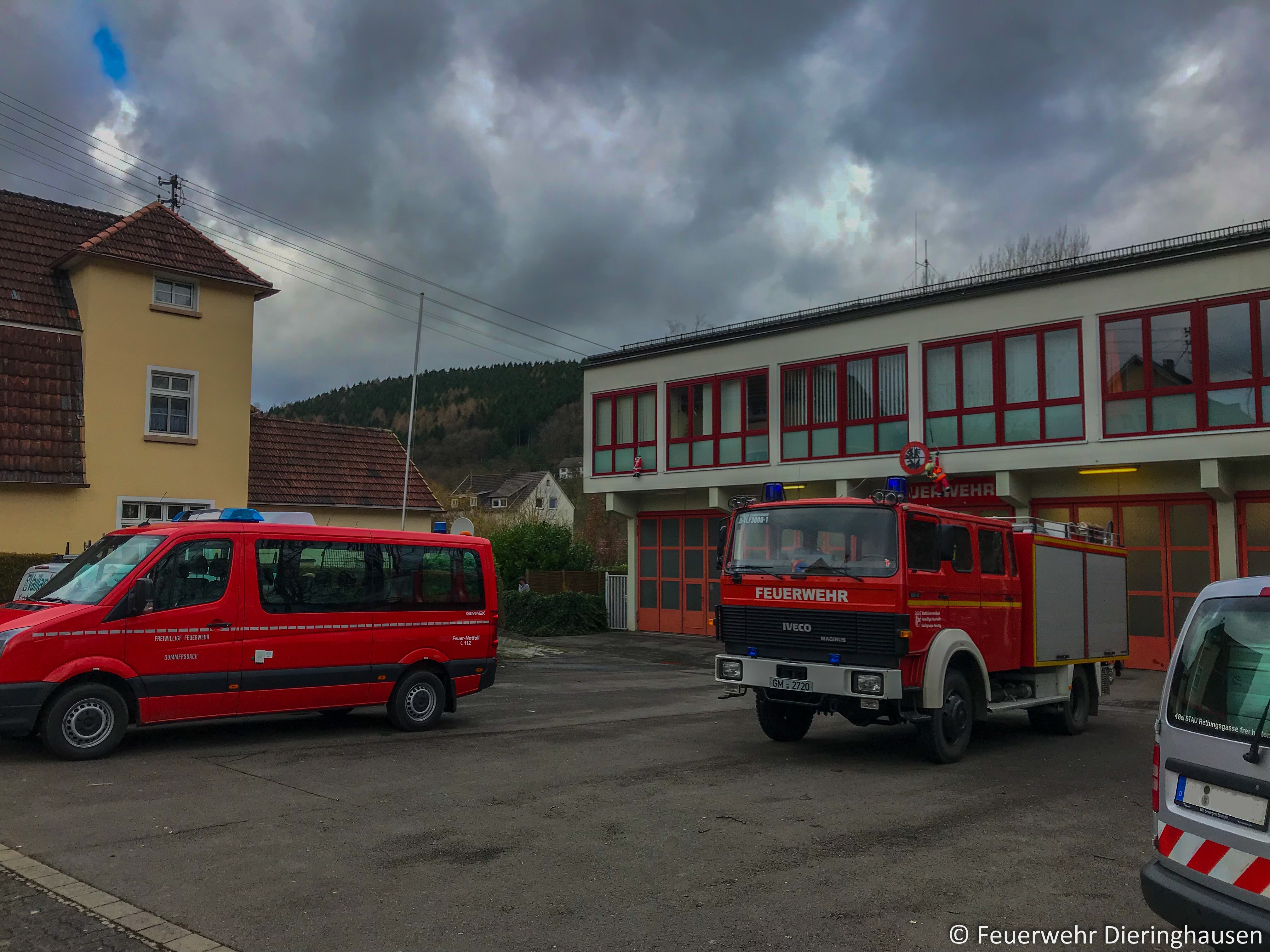 Um 11:44 Uhr wurde die Löschgruppe Dieringhausen über Funkmeldeempfänger und Sirene aufgrund der bestehenden Sturmlage alarmiert. Es wurde die Einsatzbereitschaft hergestellt und die Einsatzfahrzeuge besetzt. Parallel dazu wurde die Einsatzabschnittsleitung im Feuerwehrgerätehaus Dieringhausen in Betrieb genommen. Fortan wurden uns die Einsatzstellen im Einsatzgebiet um Brunohl, Dieringhausen und Hunstig von der Feuerwehreinsatzleitung der Feuerwehr Gummersbach per Fax zugewiesen, um diese weiter durch den stellvertretenden Zugführer zu koordinieren. Damit war eine geordnete und strukturierte Abarbeitung der verschiedenen Einsatzstellen nach Priorität möglich. Eine Vielzahl von Sturmeinsätzen wurden von den Löschgruppen Hunstig und Dieringhausen in Zusammenarbeit abgearbeitet.