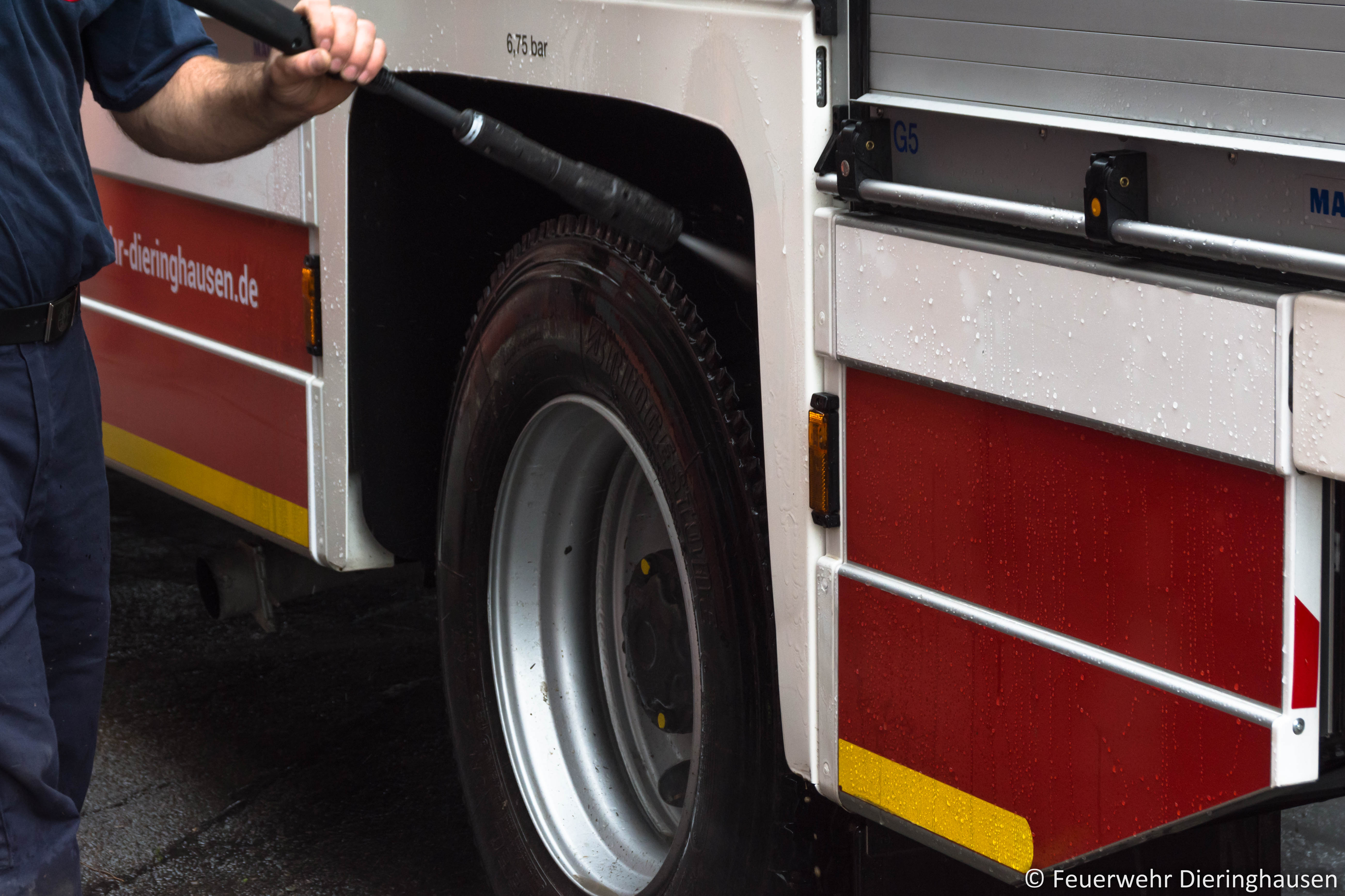 Nach dem Übungsende fand ein allgemeiner Erfahrungsaustausch am Feuerwehrhaus Dieringhausen statt. Abschließend wurden die Einsatzfahrzeuge und Gerätschaften gereinigt und es gab Bratwurst vom Grill.