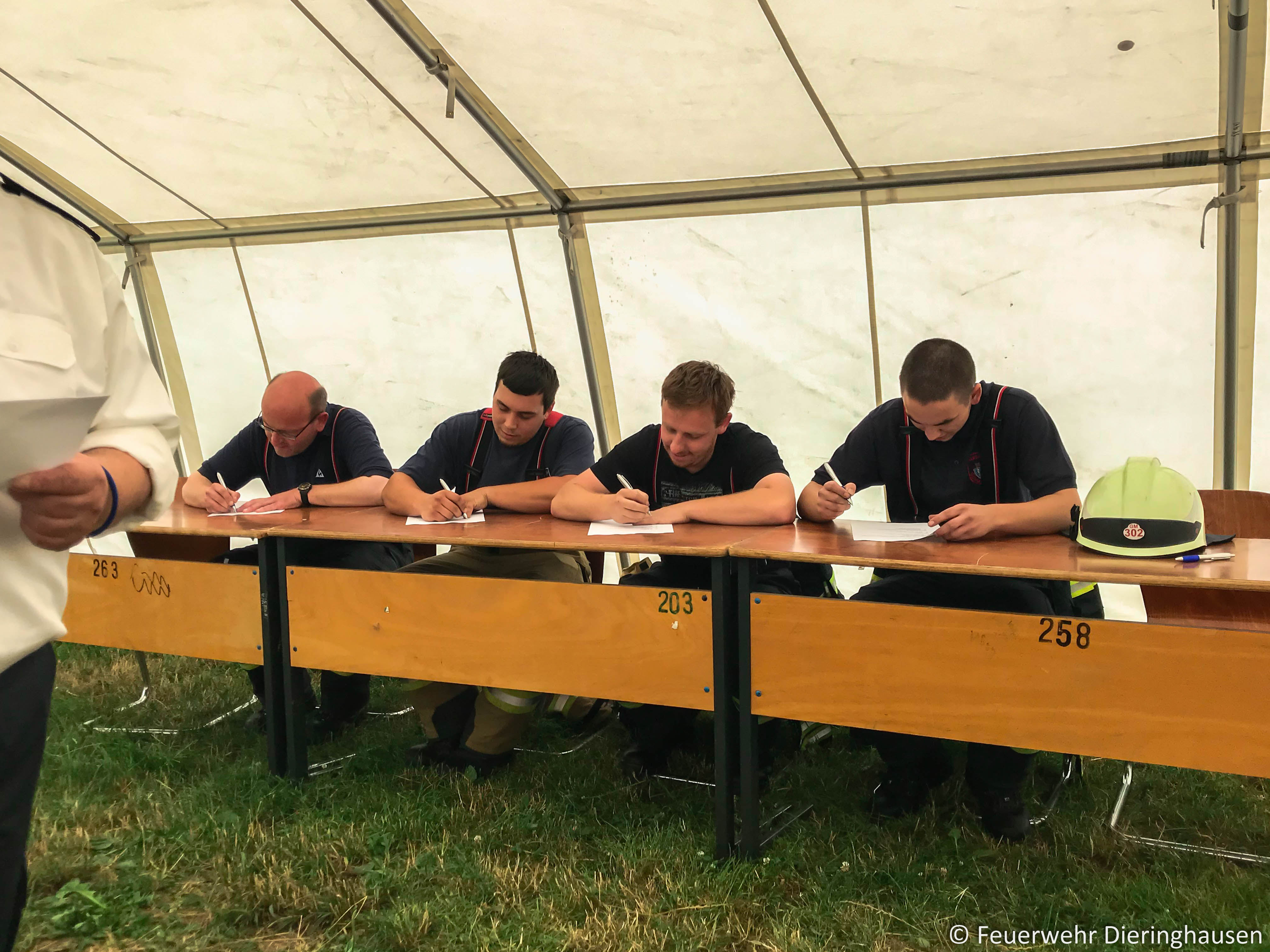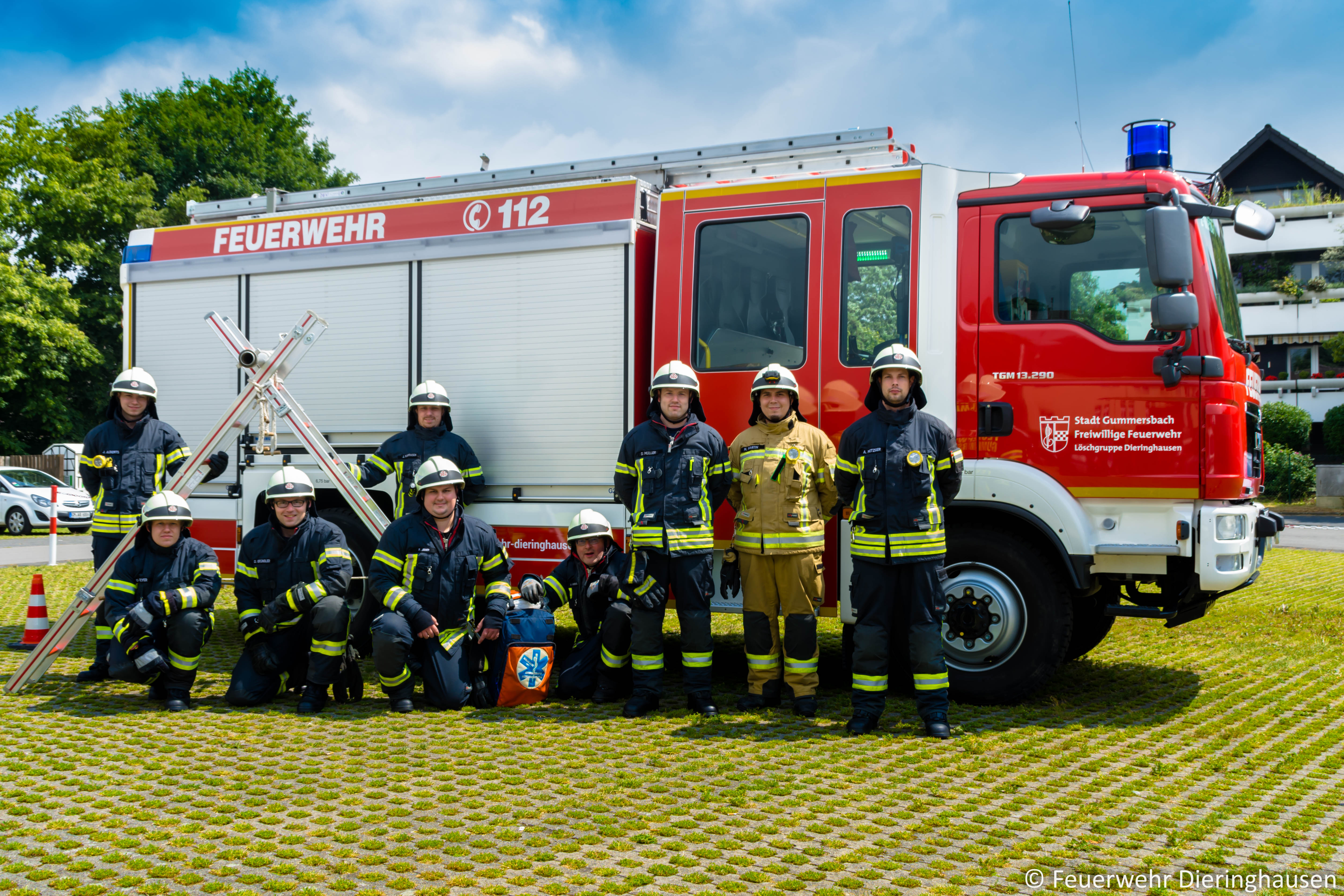 Die Löschgruppe Dieringhausen bewies auch in diesem Jahr wieder ihr Können auf dem Leistungsnachweis in Eckenhagen. Der Leistungnachweis besteht im Einzelnen aus einer praktischen Übung, dem legen von Knoten und Stichen, die Beantwortung von Fragen aus einem Fragenkatalog, einer medizinischen Aufgabenstellung und dem sportlichen Teil.