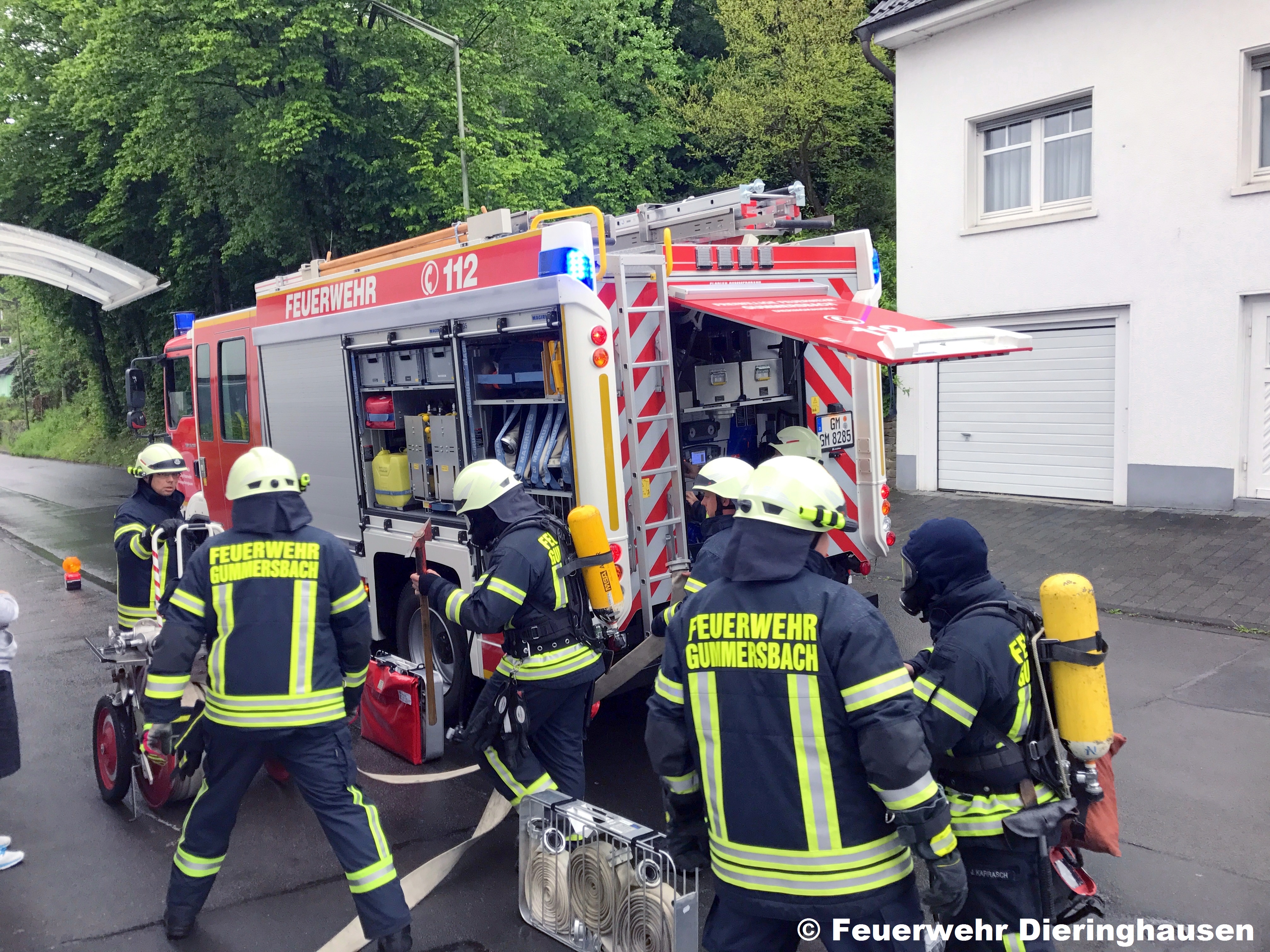 Die Löschgruppe Dieringhausen wurde am Abend über Funkmeldeempfänger zu einem Übungseinsatz alarmiert.