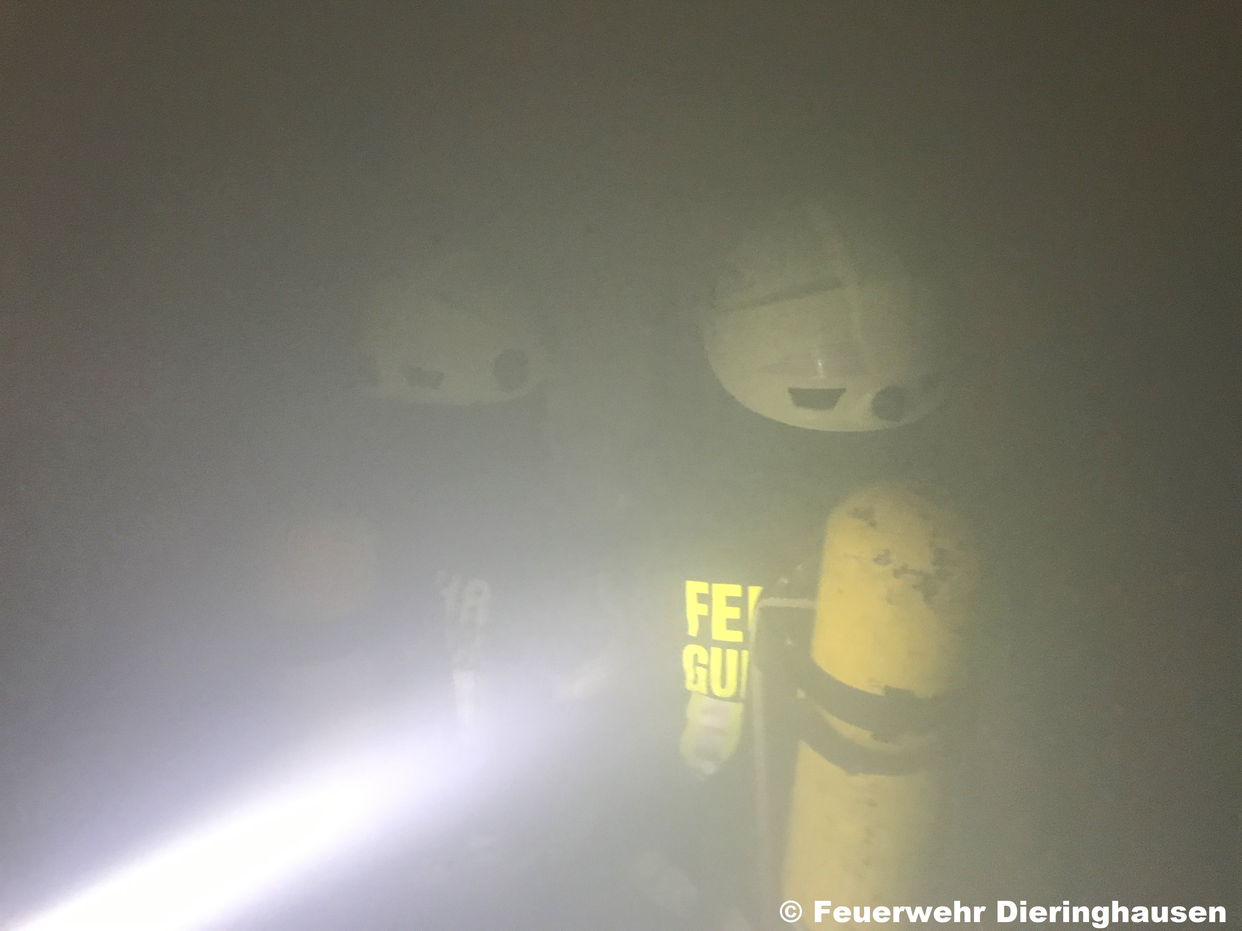 Hilfe der Wärmebildkamera die Lagerhalle und den angrenzenden Kellerbereich. Die vermissten Personen konnten schnell ausfindig gemacht und ins Freie gerettet werden.