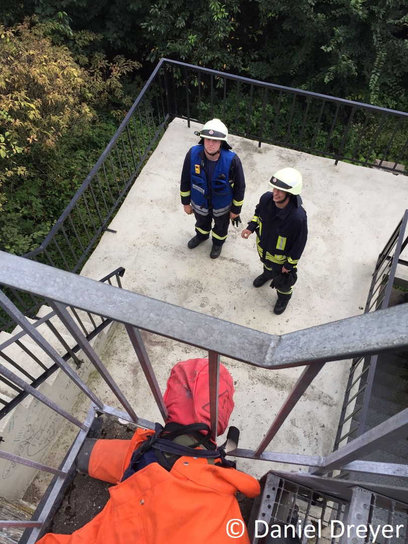 Am Samstagmittag trafen sich die Mitglieder der Löschgruppe Dieringhausen zur Zwischenübung. Es wurde eine Personenrettung simuliert. Auf dem Meerhardtturm steckte eine Person mit dem