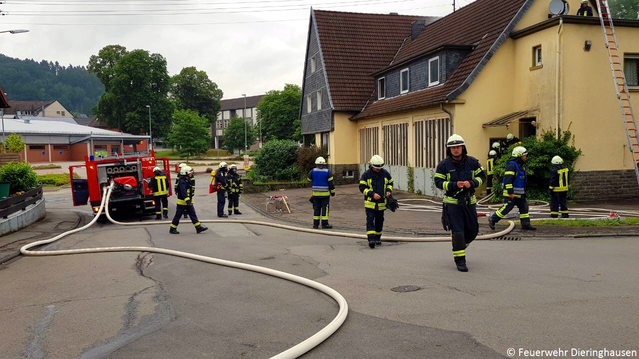 In einem Übungsobjekt am alten Bahnhof in Niederseßmar war es zu einem Gebäudebrand gekommen. Mehrere Personen konnten das Gebäude nicht mehr rechtzeitig verlassen und mussten von