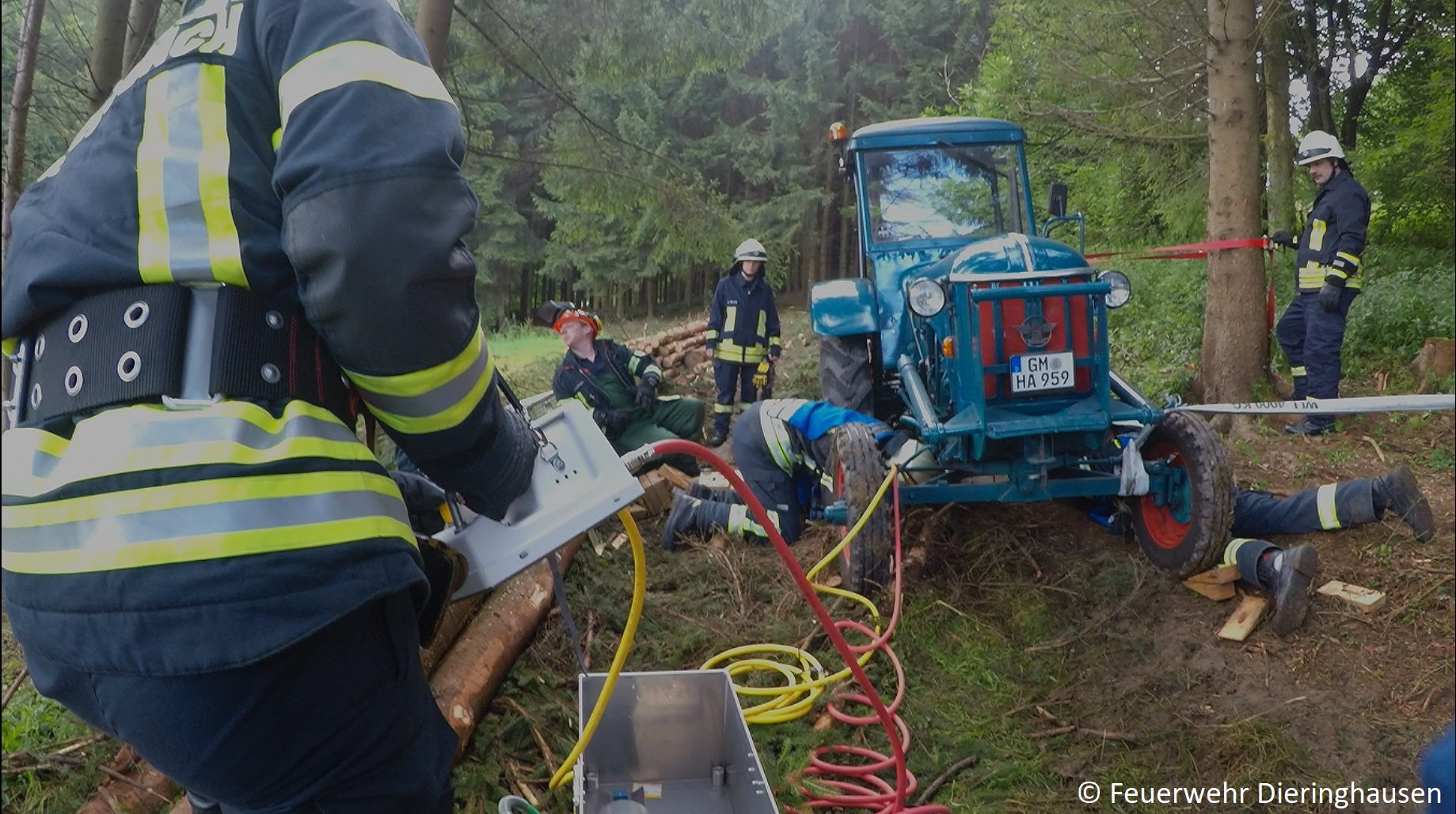 Es gab mehrereEinsatzstellen nach einem Unwetter abzuarbeiten. Ein Forstarbeiter war mit dem Bein unter einem Treckerreifen eingeklemmt und musste mit Hebekissen befreit werden. Ein vermisstes Kind musste mit der Schleifkorbtrage aus einem Stauwehr gerettet werden. Außerdem gab es einen Waldbrand nach Blitzschlag zu bekämpfen. Alle Szenarien wurden erfolgreich in Zusammenarbeit mit den Kameraden der oben genannten Löschgruppen absolviert.