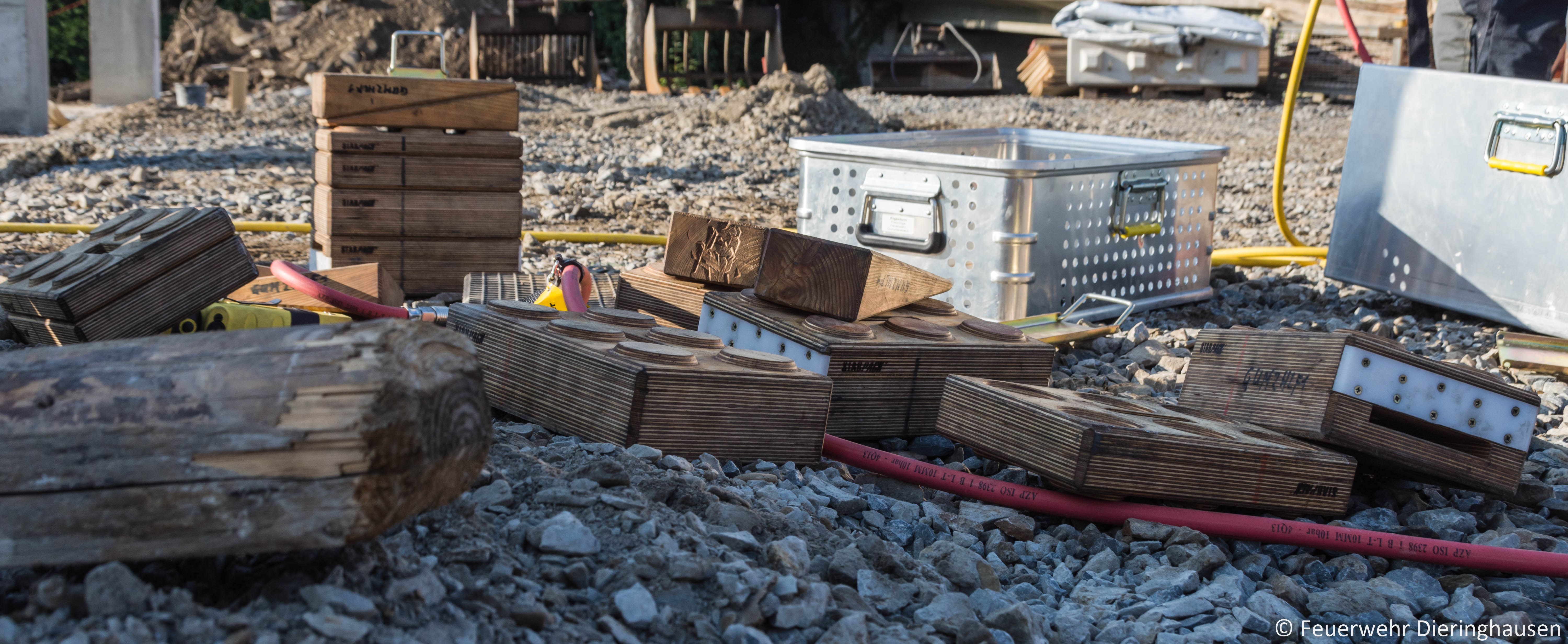 Gleich zwei Übungsszenarien mit verletzten Personen galt es am Morgen abzuarbeiten. Zunächst kam es auf einer Baustelle zu einem schweren Arbeitsunfall mit einem Mobilkran. Anschließend geriet eine Propangasflasche beim Entfernen von Unkraut in Brand.