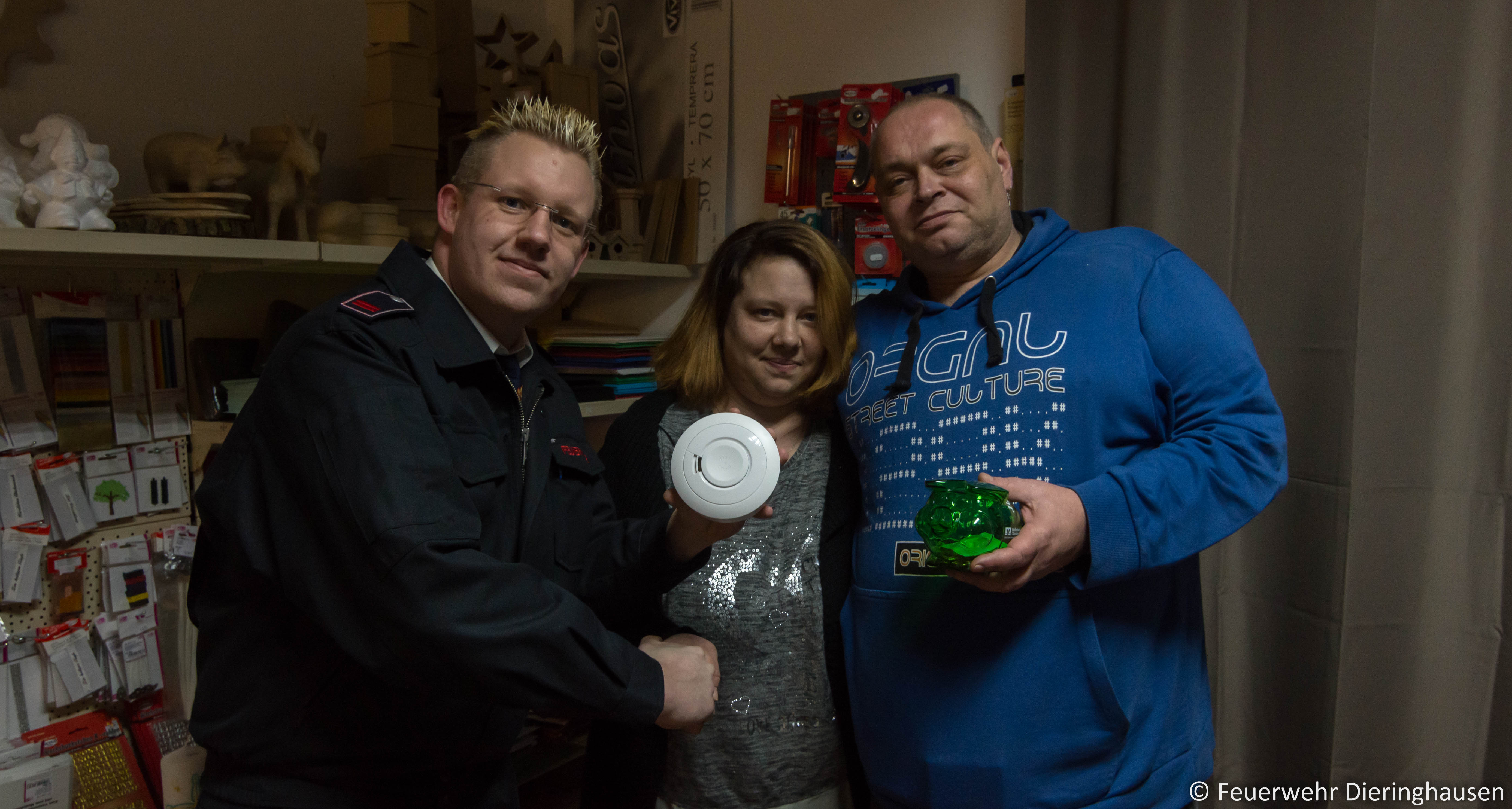 Zum wiederholten Male übergaben die Eheleute Wolf eine Spende an die Löschgruppe. Über ein Jahr lang sammelten die beiden Spenden in einem dafür eigens angeschafften Sparschwein in ihrem Bastelgeschäft. Als Dankeschön für die beispielhafte Eigeninitiative übergab Löschgruppenführer Daniel Dreyer einen Rauchwarnmelder an die Eheleute. Wir möchten uns ganz besonders für die großartige Spendenbereitschaft aus der Bevölkerung bedanken.